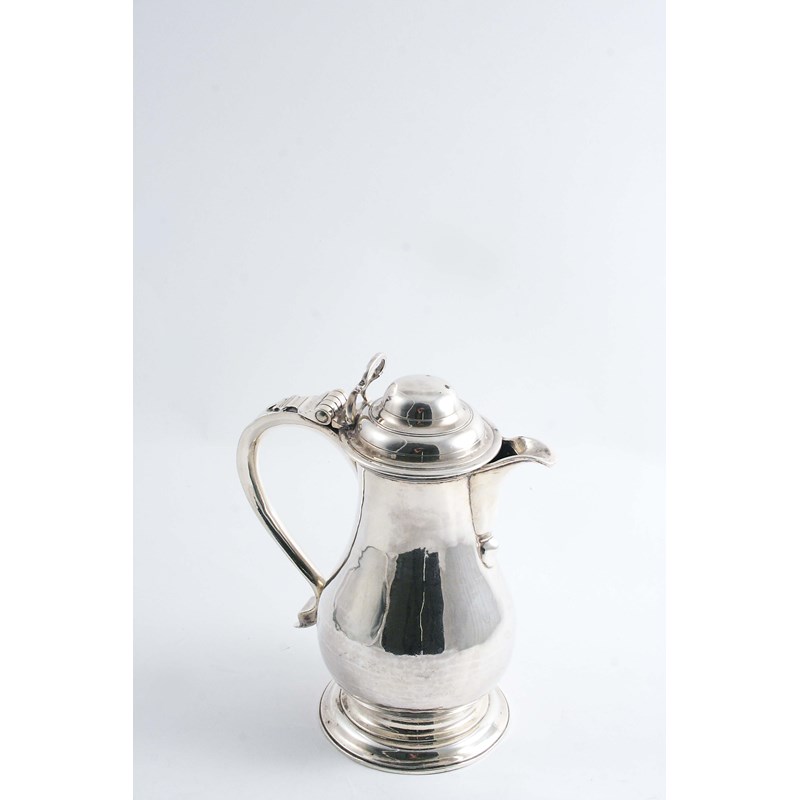 A GEORGE III BALUSTER COVERED JUG on a spreading circular foot, with a large scroll handle, the domed cover with a chair-back thumbpiece, by Thomas Wallis, London 1769; 8.45" (21.4 cms) high; 24 oz