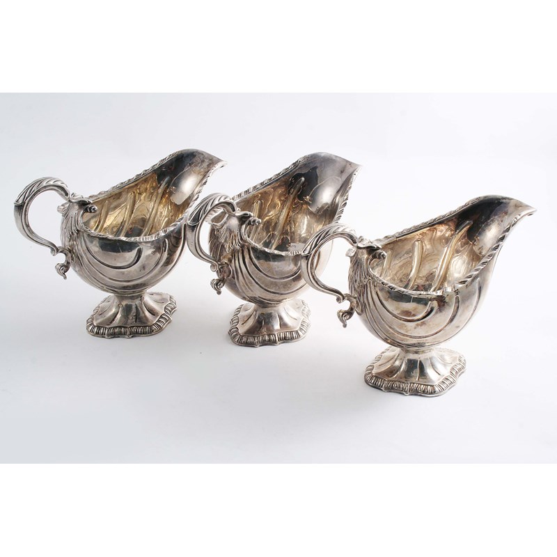 with fluted bowls, gadrooned borders, pedestal bases & leaf-capped scroll handles, crested, by David Whyte & William Holmes, London 1766; 6.2" (15.8 cms) high; 46.5 oz (3)