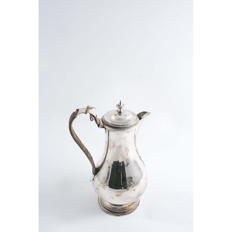 with bead borders, a knop finial & a cord-bound scroll handle, crested, by Thomas Heming, London 1779; 10" (25.7 cms) high; 20.9 oz