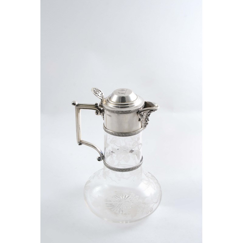 A VICTORIAN MOUNTED CLEAR GLASS CLARET JUG