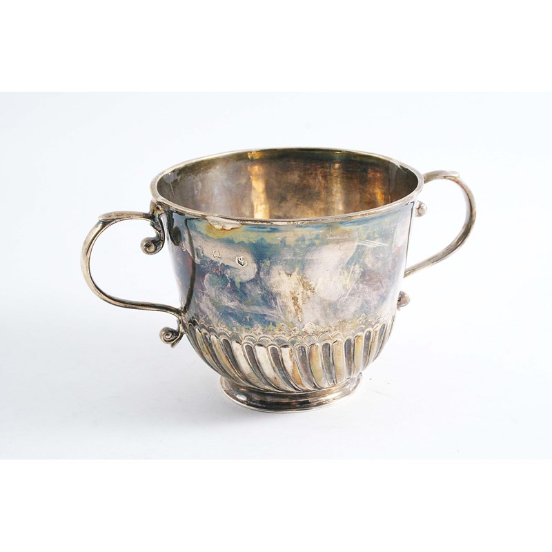 A WILLIAM III TWO-HANDLED CUP OR PORRINGER