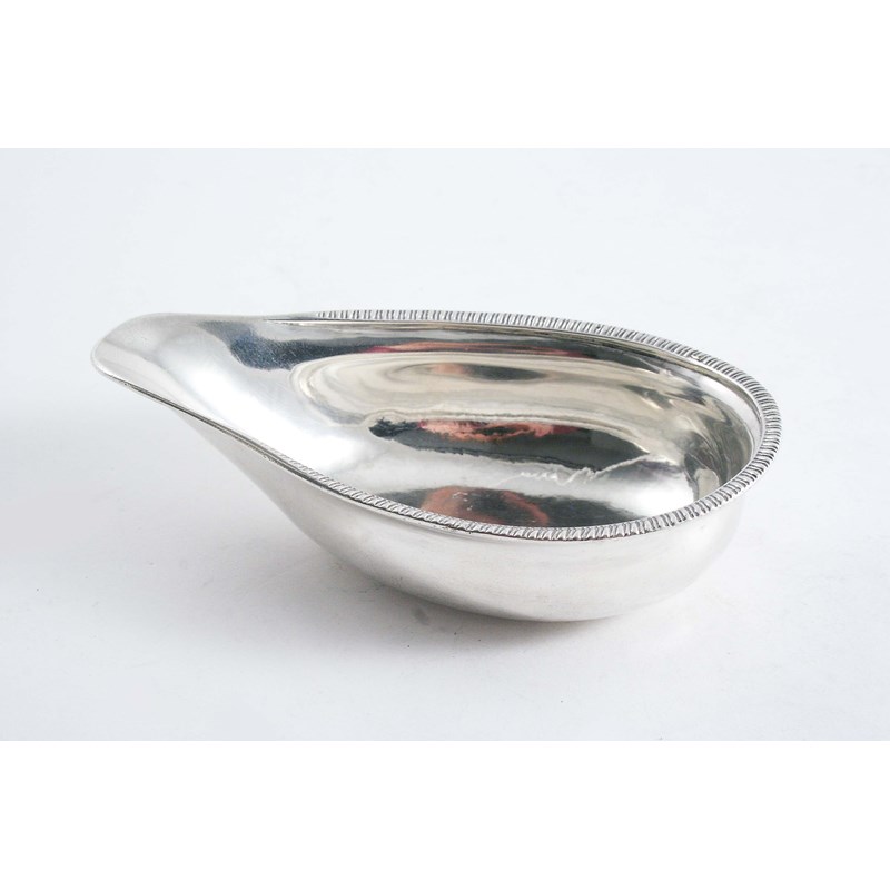 A GEORGE III PAP BOAT with a gadrooned border, initialled, by Thomas Johnson, London 1807; 5" (12.8 cms) long; 1.75 oz