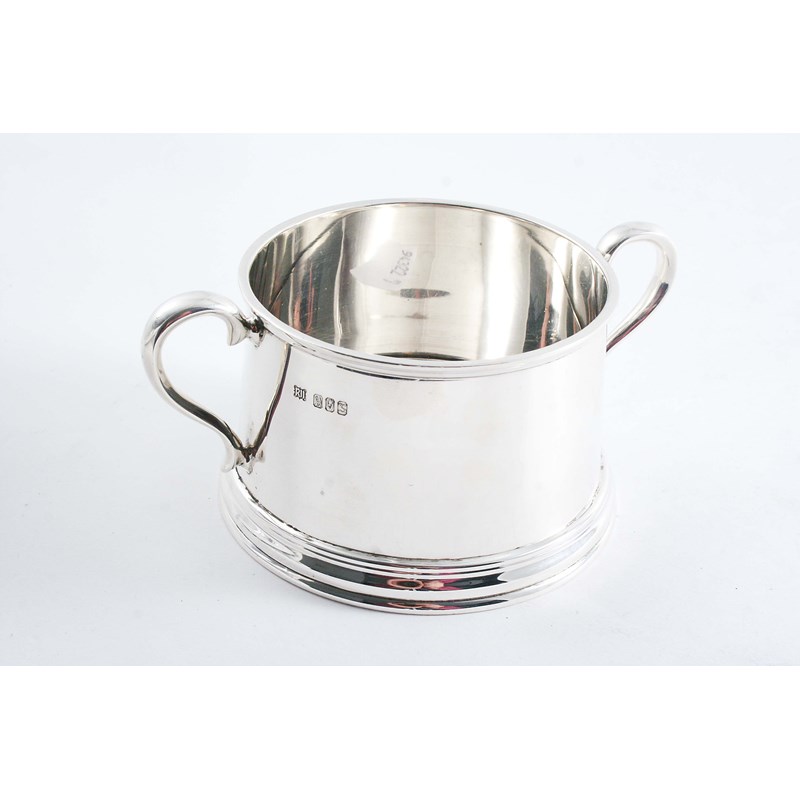 A MODERN IRISH TWO-HANDLED SUGAR BOWL of tapered cylindrical form with a moulded base, by the Royal Irish Silver Company, Dublin 1974; 4.4" (11.2 cms) diameter; 9.1 oz