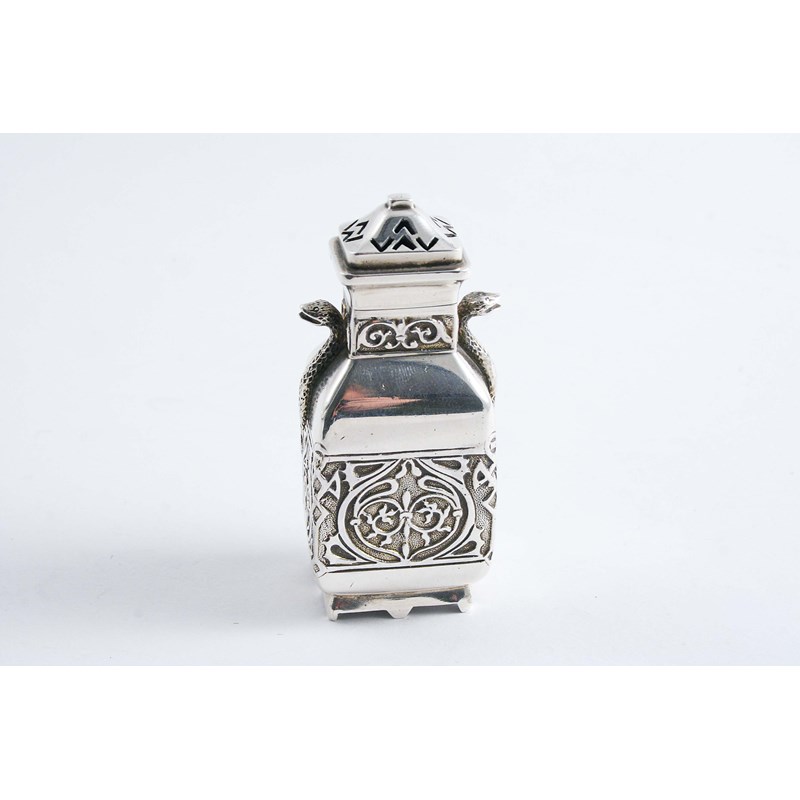 A VICTORIAN NOVELTY PEPPERETTE in the form of a miniature Chinese vase with serpent handles, by E.H. Stockwell, London 1882; 3" (7.6 cms) high; 2.6 oz