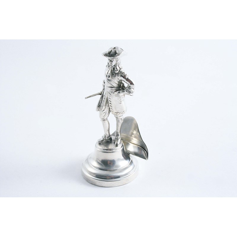 A MODERN CAST NOVELTY MENU CARD HOLDER in the form of a cavalier figure, with sword drawn, by the Goldsmiths & Silversmiths Co.Ltd., London 1932 (loaded base); 3.7" (9.2 cms) high