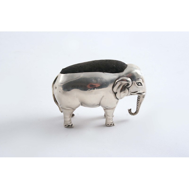 A NOVELTY PIN CUSHION in the form of an elephant by Adie & Lovekin, Birmingham 1910; 2.7" (6.8 cms) long