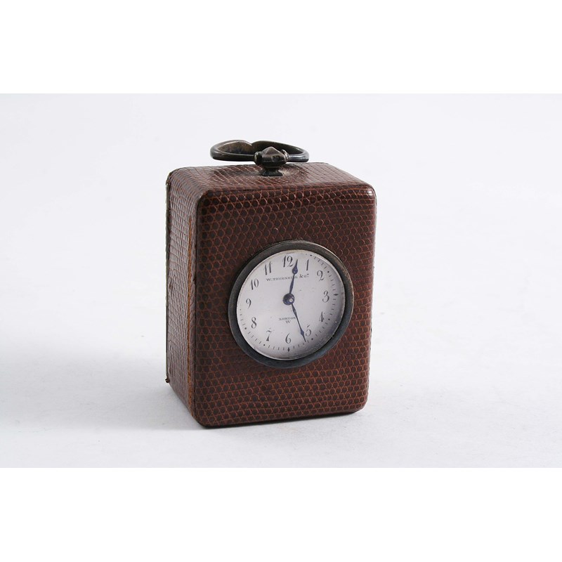 A VICTORIAN MOUNTED LEATHER TIMEPIECE