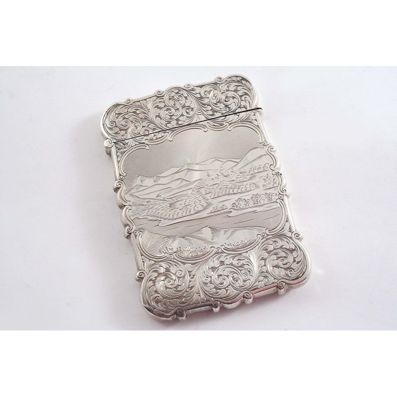 A VICTORIAN ENGRAVED "CASTLE TOP" CARD CASE