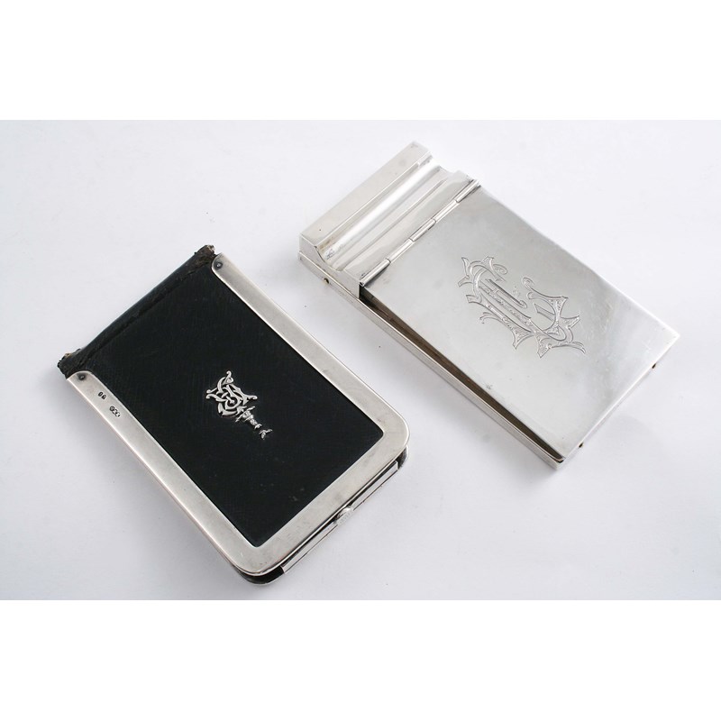 with patent clasp & applied crest & monogram, by H.W. Dee, London 1889 and a late 19th century German notepad holder, monogrammed; the latter 5.1" (13 cms) long (2)