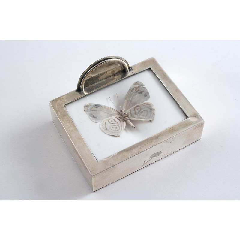 mounted with a small butterfly (behind glass), set in "Denton's Patent Butterfly Tablet", by Anderson & Lehrs, London 1912; 2.75" (7 cms) wide