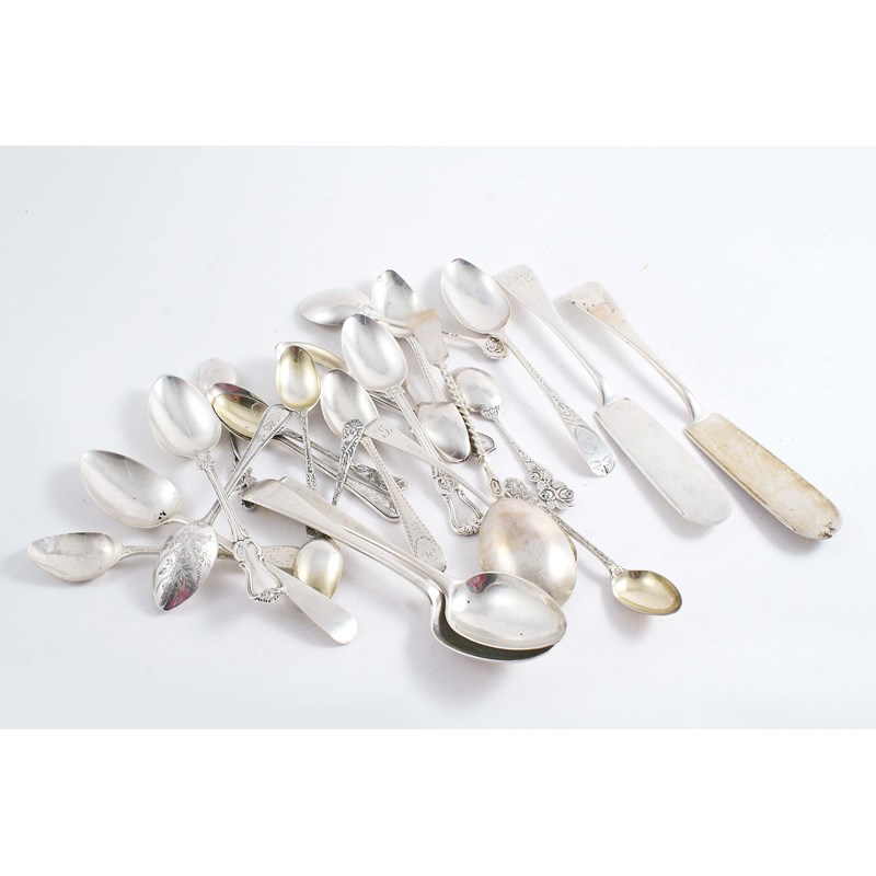 A SMALL GROUP OF MISCELLANEOUS FLATWARE & CUTLERY (some plated); 16 oz weighable silver (lot)