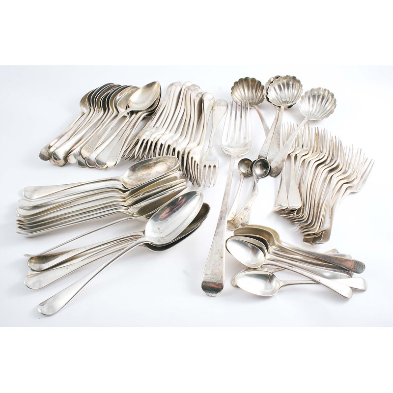 A QUANTITY OF HANOVERIAN & OLD ENGLISH PATTERN FLATWARE