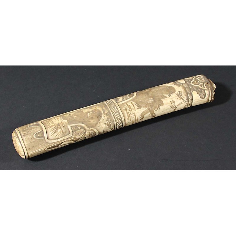 JAPANESE IVORY SWORD HANDLE, 19th century, carved with monkeys, length 22cm