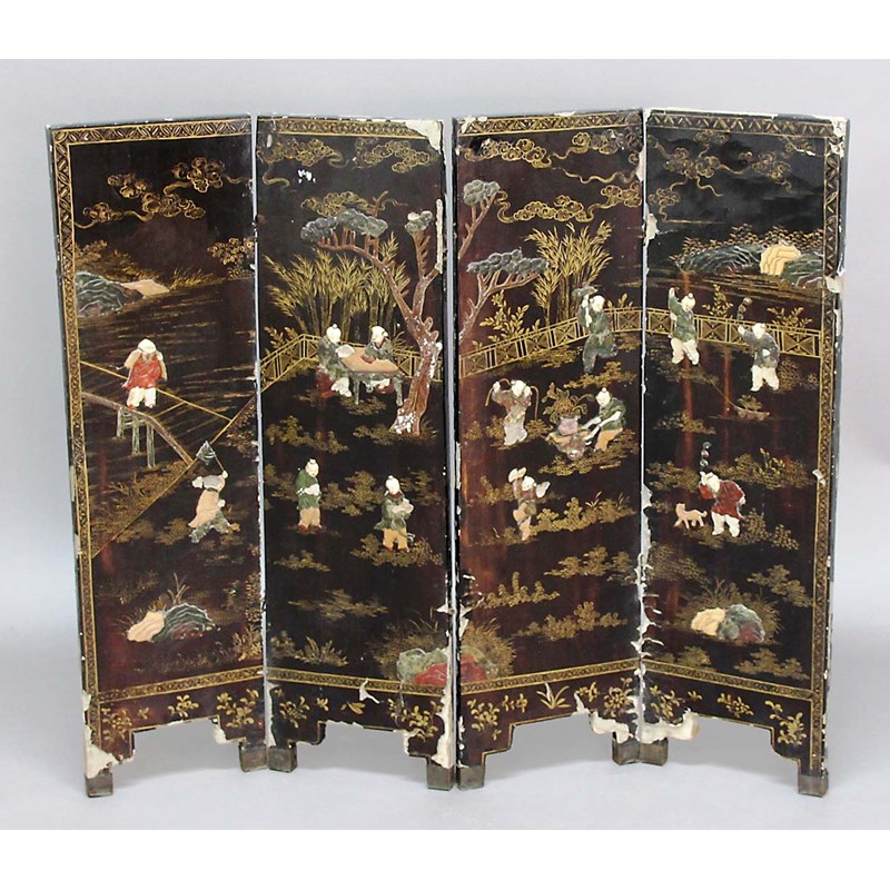 JAPANESE FOUR FOLD LACQUERED DWARF SCREEN,