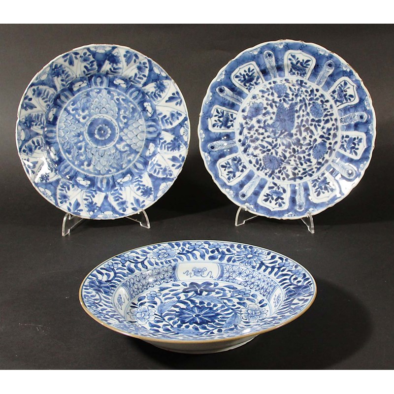 GROUP OF THREE JAPANESE ARITA PLATES, each painted with a stylised floral design, diameter 22.5cm (3)