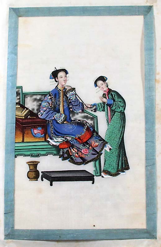 CHINESE SUNQUA ALBUM OF SIX PAIRS OF PITH OR RICE PAPER PAINTINGS,