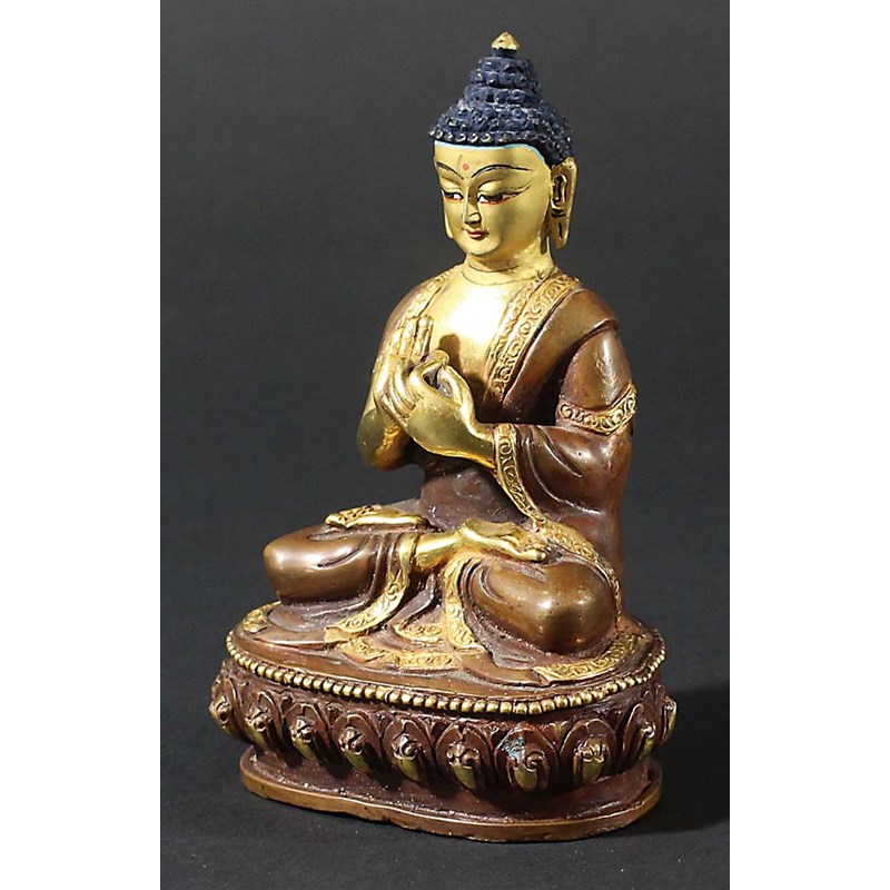 BRONZE BUDDHA, perhaps Thai or Burmese, seated on a lotus base, burnished and painted decoration, height 10cm