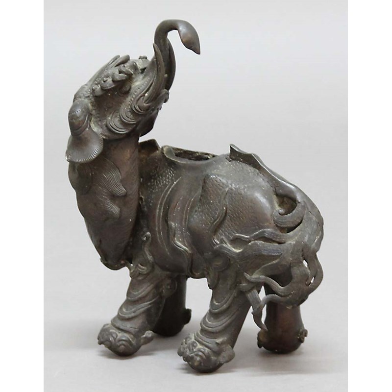 CHINESE BRONZE ELEPHANT CENSER, standing with its head turned, lacking cover or flue, height 17cm