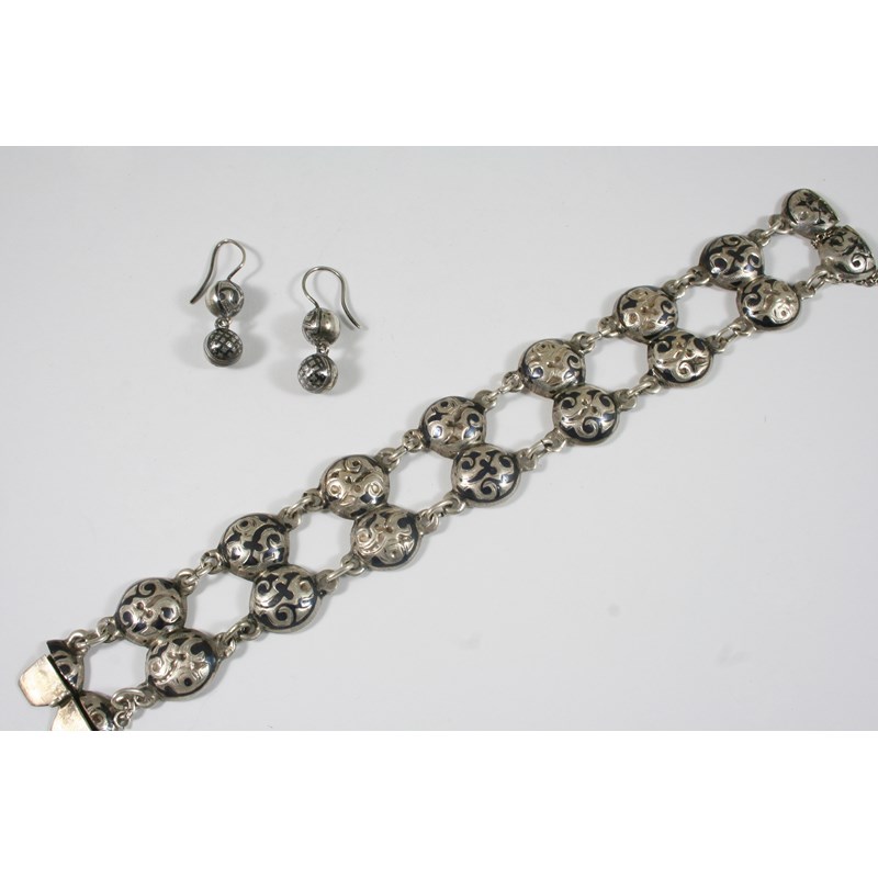 formed with pairs of circular discs, possibly with Russian marks, 22cm. long., together with a pair of similar earrings.