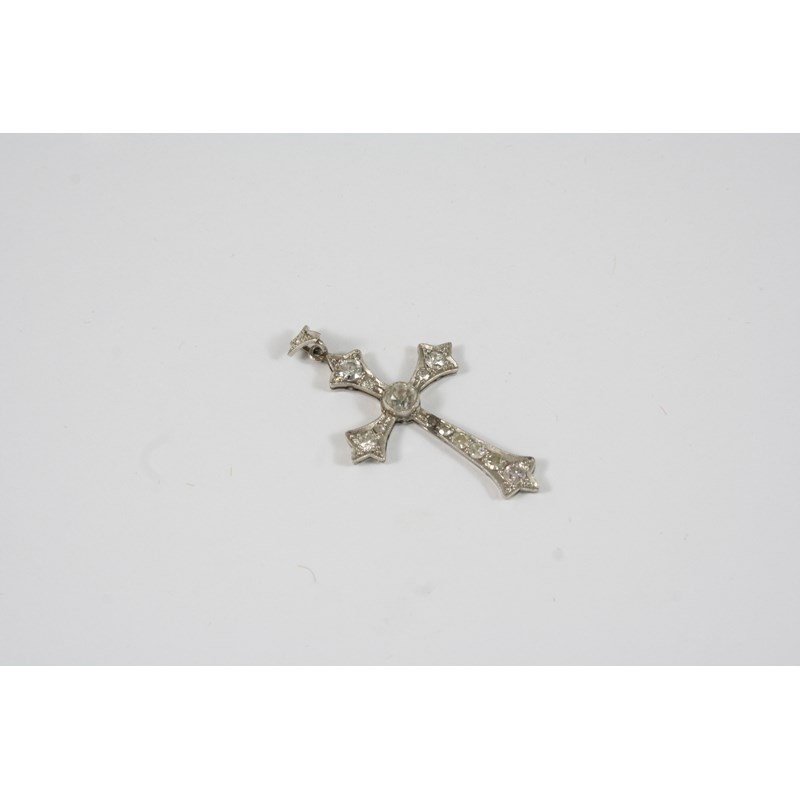 A DIAMOND CRUCIFORM PENDANT set overall with graduated circular-cut diamonds, 4 x 2.2cm.