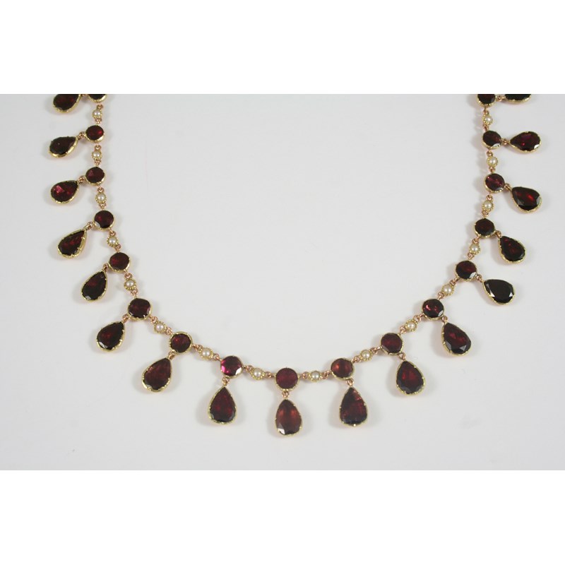 A GEORGIAN GARNET AND PEARL NECKLACE
