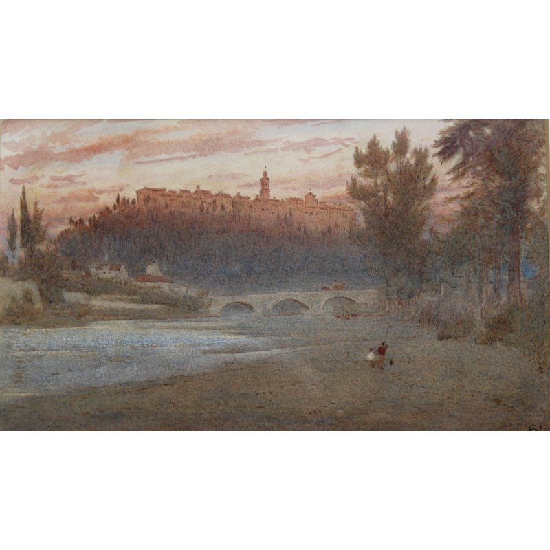 VIEW OF AN ITALIAN TOWN FROM THE BANKS OF A RIVER (POSSIBLY SORANO ON THE LENTE)