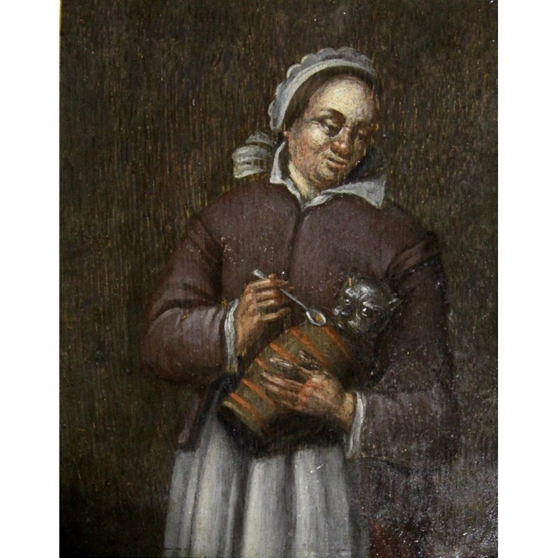 Inscribed indistinctly verso, bears inscribed label that reads Richard Cosway Esq R:A:/ is of opinion that this picture/ bought for ine shilling by/ Lord De La Zouche in Brighton/ 1816, was painted by/ Egbert Hemskirk./ Stratford Place/ Decr. 1817, oil on panel