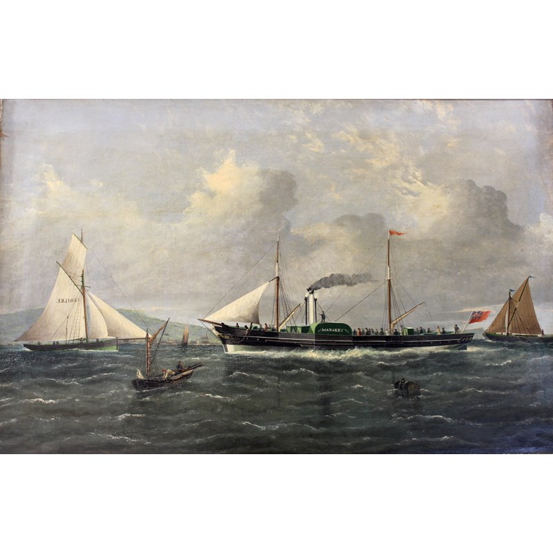 JOHN L. TUDGAY (Fl.1836-1859) THE PADDLE STEAMER `MARGERY` IN THE THAMES ESTUARY Signed and dated 1872, oil on canvas 57 x 90cm.