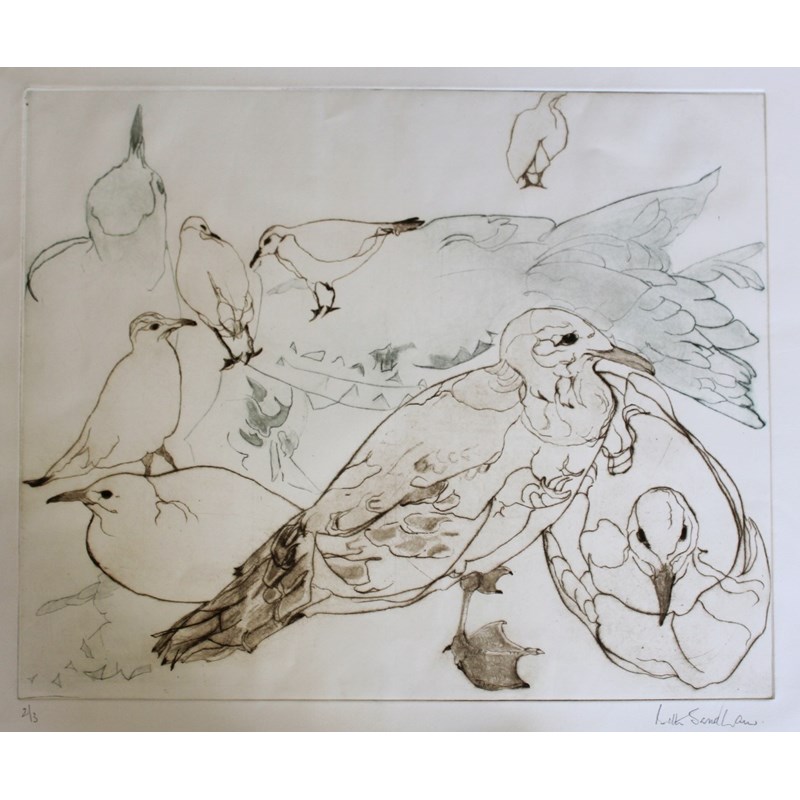 Comprising lithographs, etchings and aquatints (some duplicated), offering a broad survey of the artist's output; comprising animal subjects, natural history and landscapes etc; principally 1980's and 1990's, many signed and titled; with a few examples by Ann Blake (figure subjects and nudes); and a few original drawings and watercolours ascribed to Sandham, all unframed (approx 40 items)