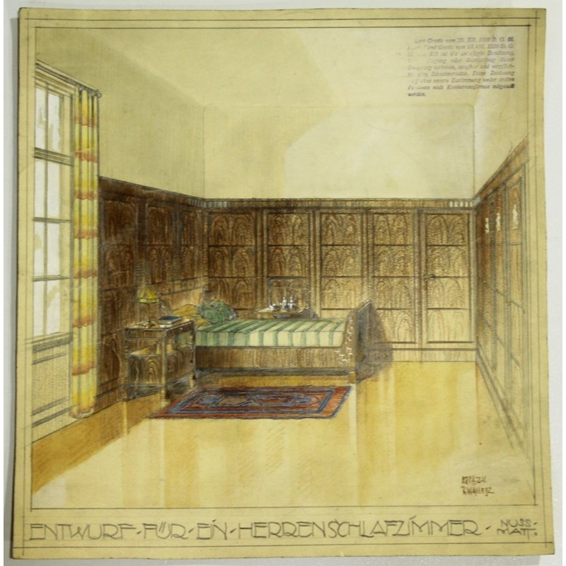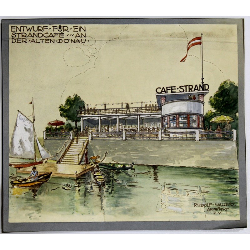 comprising numerous drawings, watercolours, blueprints and reproductions for principally domestic (and some civic) buildings and furnishing schemes in Vienna (and some in London), mainly c.1932-1947, a few from c.1920, many signed and/or inscribed with location details and date, approx 300-350 leaves in total including some by other hands, many folded, creased, worn or with some damages at edges but the majority in satisfactory/good condition, various sizes; with nine books, including bound copies of The Architect's Journal for 1951-1953 and two volumes of Der Baumeister (1932-1933) etc (large folio and two suitcases)