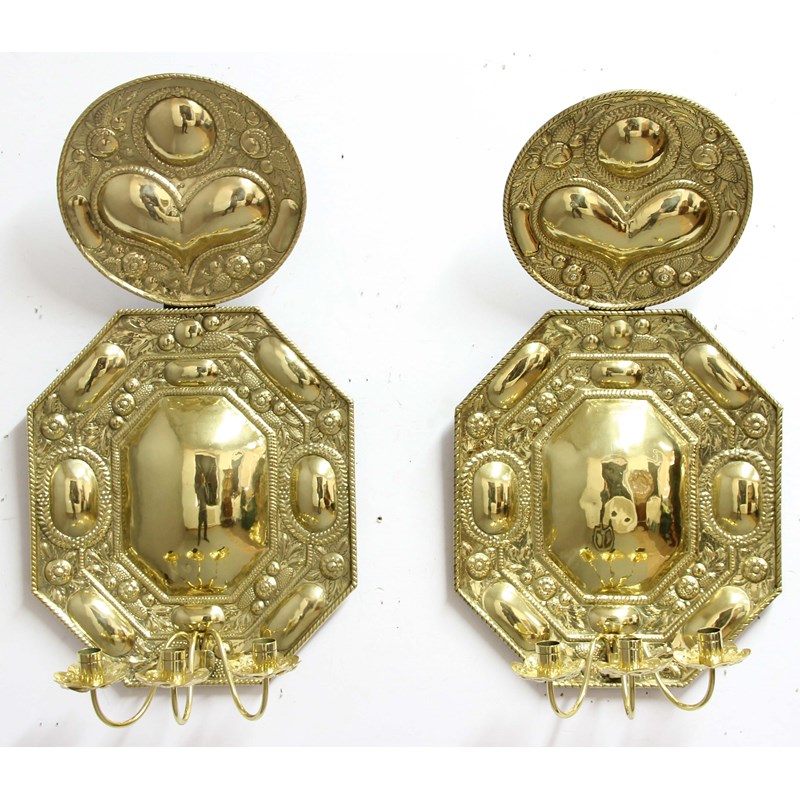 SET OF FOUR DUTCH STYLE THREE BRANCH WALL SCONCES,