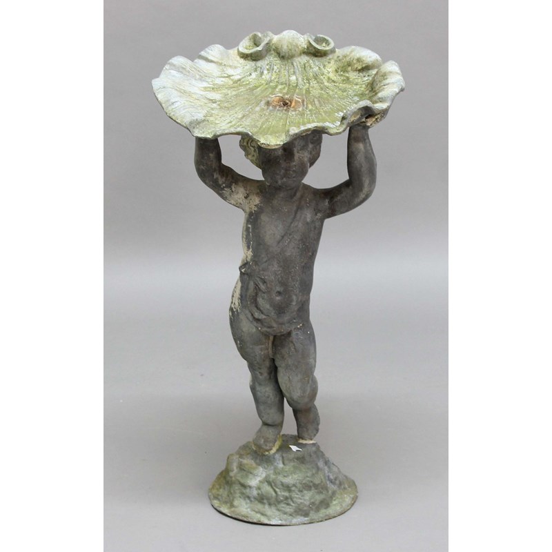 LEAD BIRD BATH, the shell bath supported by a putto, height 73cm