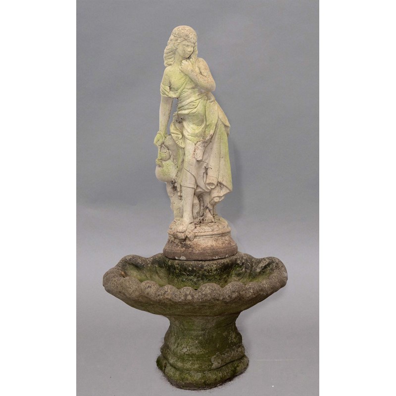 RECONSTITUTE STONEWARE WATER FEATURE, modelled as a classical maiden above a shell shaped dish, height 100cm