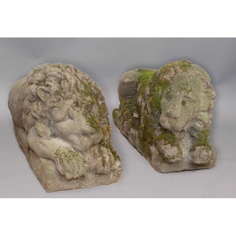 AFTER CANOVA, pair of recumbent lions, reconstituted stone, length 90cm (2)