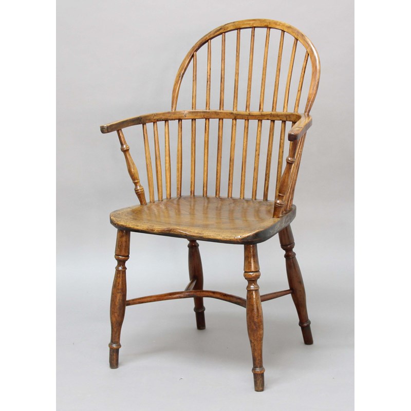YEW AND ELM WINDSOR CHAIR, late 18th century, turned supports and crinoline stretcher, height 94cm, width 60cm, depth 40cm