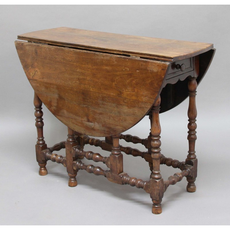 probably red walnut, the oval top above a single drawer, block and baluster turned legs, height 73cm, width open 114cm, depth 98cm