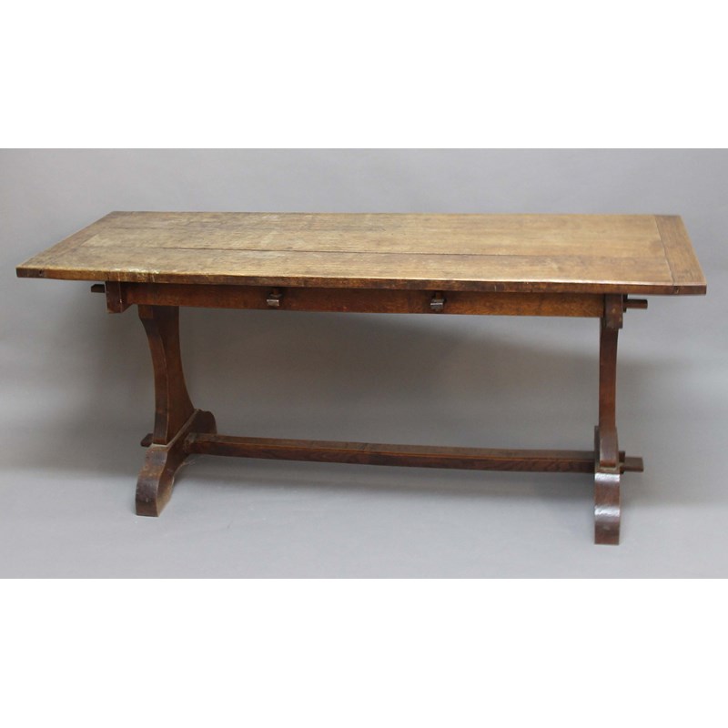 ARTS AND CRAFTS OAK REFECTORY TABLE AND PAIR OF BENCHES,