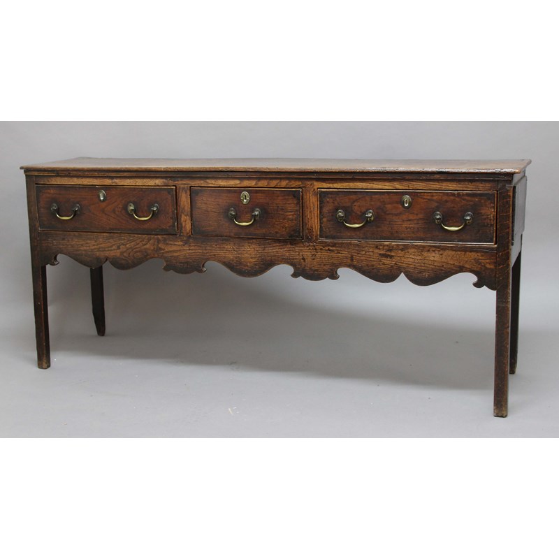 OAK DRESSER BASE, early 18th century, with three drawers above a wavy apron, height 73cm, width 166cm, depth 41cm