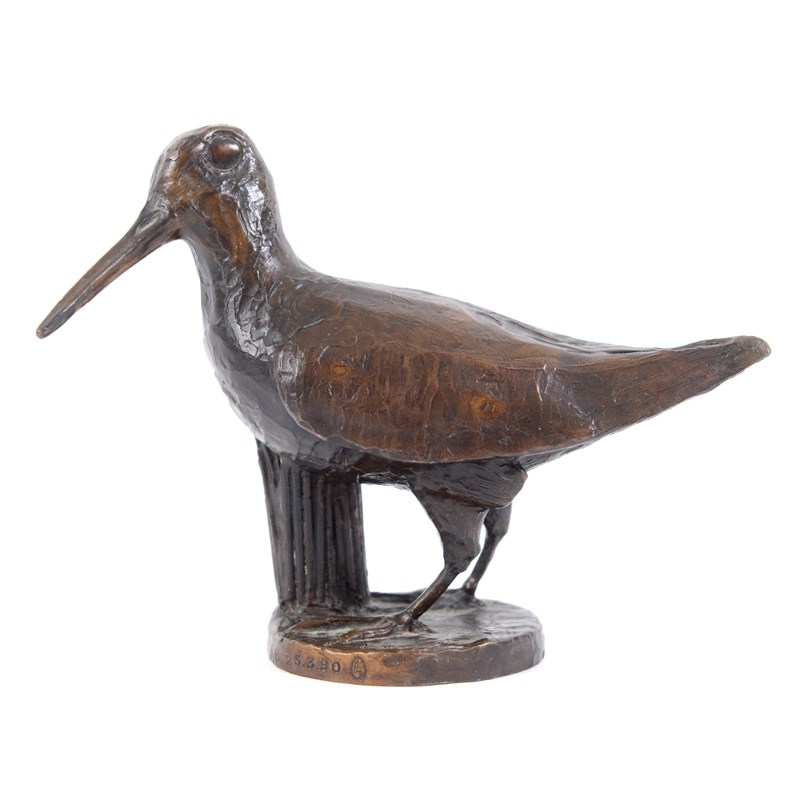 BRONZE MODEL OF A BIRD - SIGNED a contemporary limited edition bronze of a Woodcock or Snipe, mounted on a circular base. Signed, Marconi?, 6/8, 25390. 12.5cms high