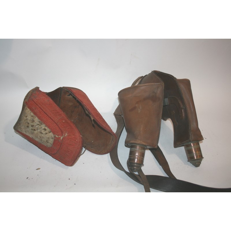 including an interesting small saddle or pannier, with compartments on either side and ornate metal ends, and with an outer cover. Also with 3 other leather saddles, stirrups and various accessories.