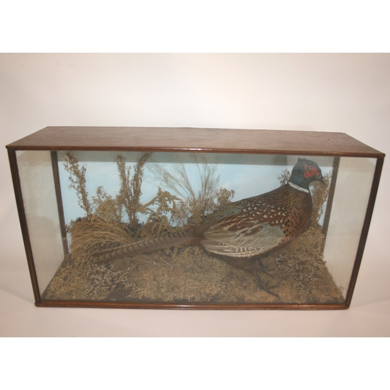 CASED PHEASANT a male pheasant set in a naturalistic background, and in a glazed and wooden case. Case 81cms across