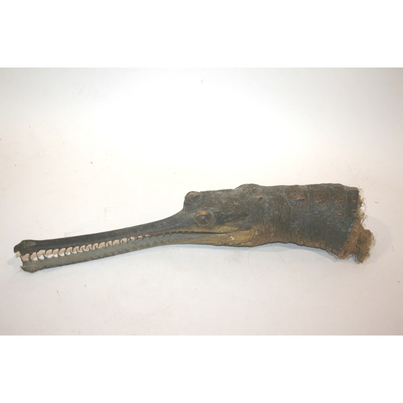 CAIMAN HEAD a head of a Caiman Crocodile, possibly missing a plaque onto which it was mounted. 39cms long