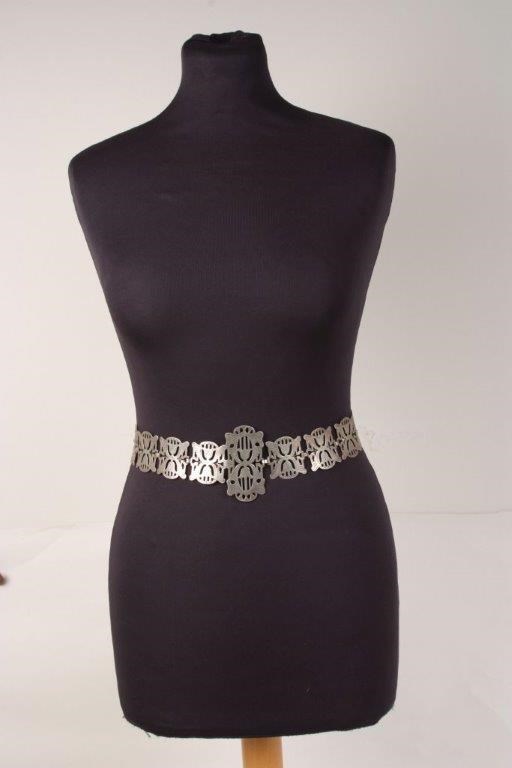 A 1930'S SILVER MARKED CHAIN BELT A pretty ornamental chain belt with silver marks on every link. 25" x 1.5". (1)