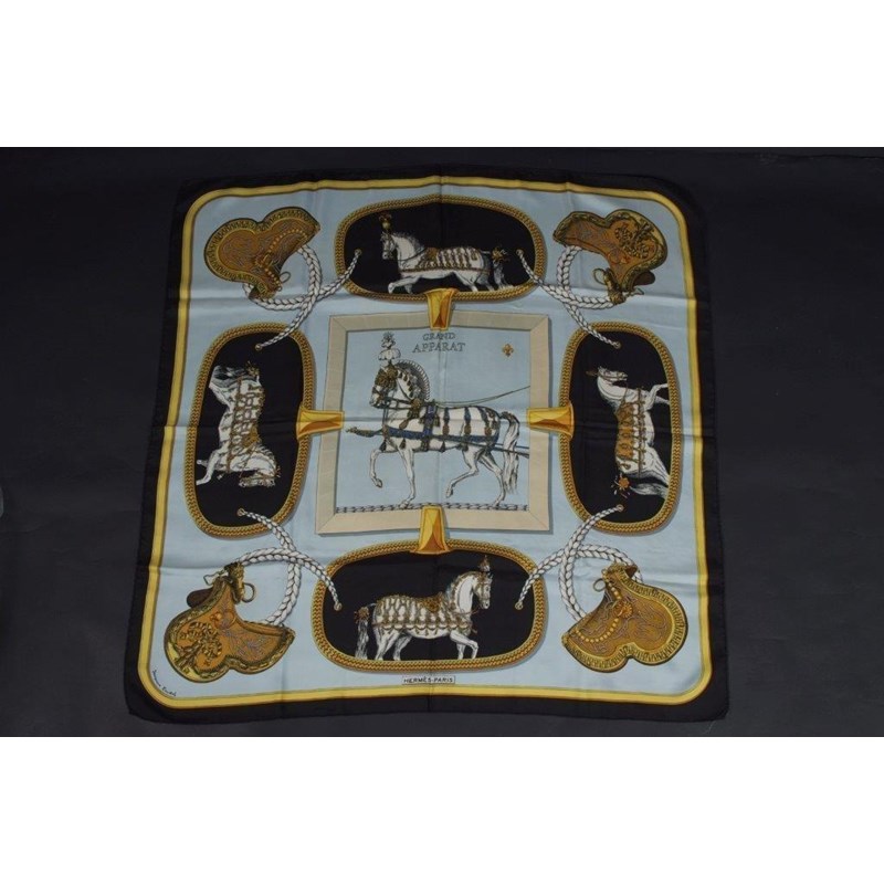 A HERMÈS SCARF - "GRAND APPARAT" Silk twill, rolled edges, signed Jacques Eudel. 90 x 90 cm. Good condition (1)