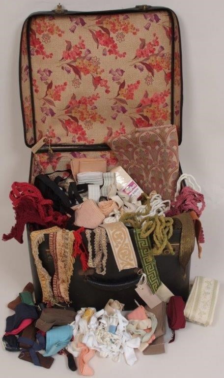 A COLLECTION OF VINTAGE HABERDASHERY A suitcase of trims and braids. (qnty)