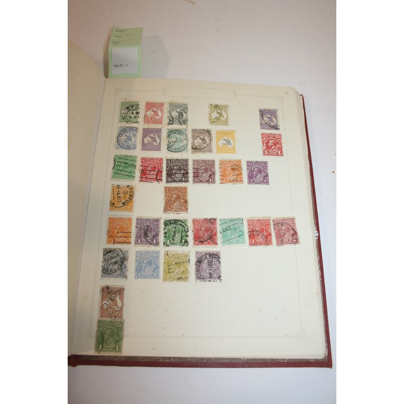 including Paragon Album with British Empire, Australia 1915 5sh Kangaroo Mint, Australian States, Malaya Straits Settlements, Sudan 1935 Gordon 50pi, used and World Stamps.