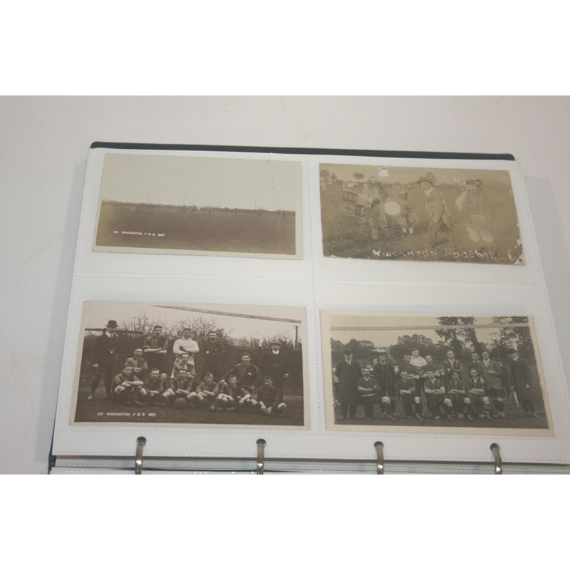 a large album of Wincanton postcards, including Meet of B.V.H Wincanton (Blackmore Vale Hounds), Bayford Hill, Wincanton Steeplechase, Wincanton Madrical Society, RFA Leaving Wincanton, Wincanton F.B.C 1907, Wincanton Cricket v Farmers, Wincanton Football Club 1905, Balsam Park, Cow & Gate Factory, Army Manoeuvres 1910, Wincanton Sunday School, Red Cross Hospital, and many more.