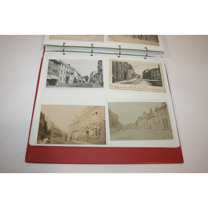 a large album of postcards, all relating to Wincanton. Including Market Square, Market Place, Town Hall, High St, The Clock Tower, Meet of Hounds 1902, Greyhound & Bear Hotels, Wesleyan Church, Turnpike High St, Blackmore Vale Hounds 1923, etc. Including early 20thc cards to more modern examples.