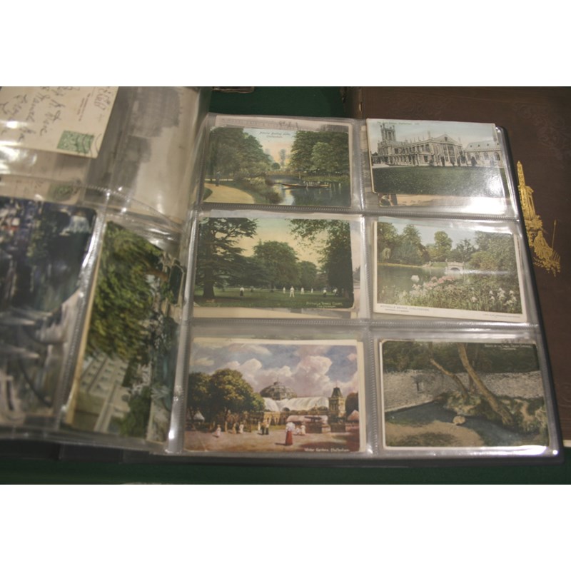 an album of approx 70 GB cards including a large number of Cheltenham (Promenade, Christ Church, Montpellier Gardens, Boys College, Pittville Boating Lake, Queens Hotel etc. Also with postcards of Cirencester and Colchester.