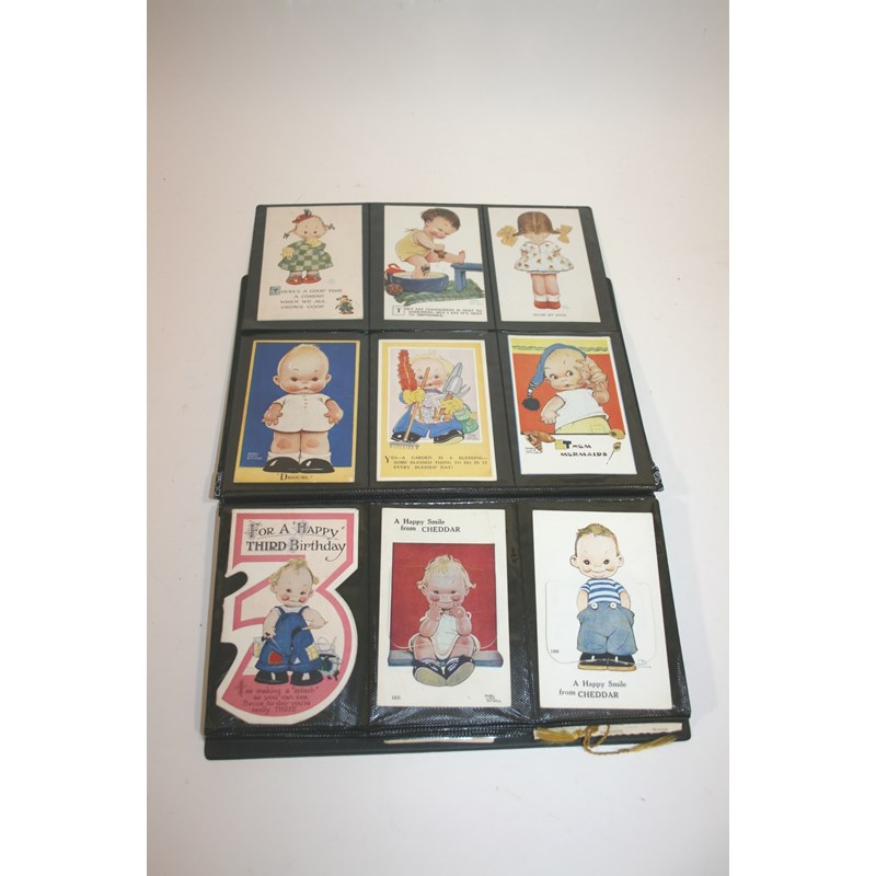 a postcard album containing a number of Mabel Lucie Attwell postcards (approx 30), vintage greetings cards etc. Also with two Victorian/Edwardian photograph albums, with a variety of studio taken portraits and other photographs. (3)